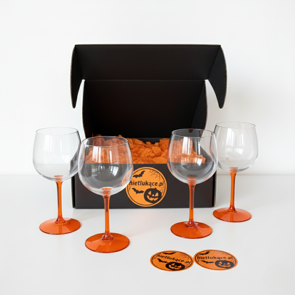 Zestaw 4 kieliszków z pomarańczową nogą - Halloween Edition