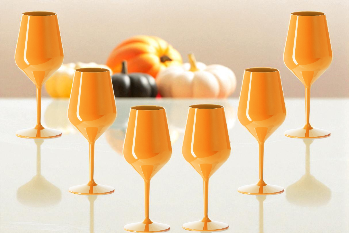 Eleganckie, nietłukące kieliszki w czarno-pomarańczowej odsłonie. Stwórz klimat Halloween na swojej imprezie bez stresu o stłuczenia