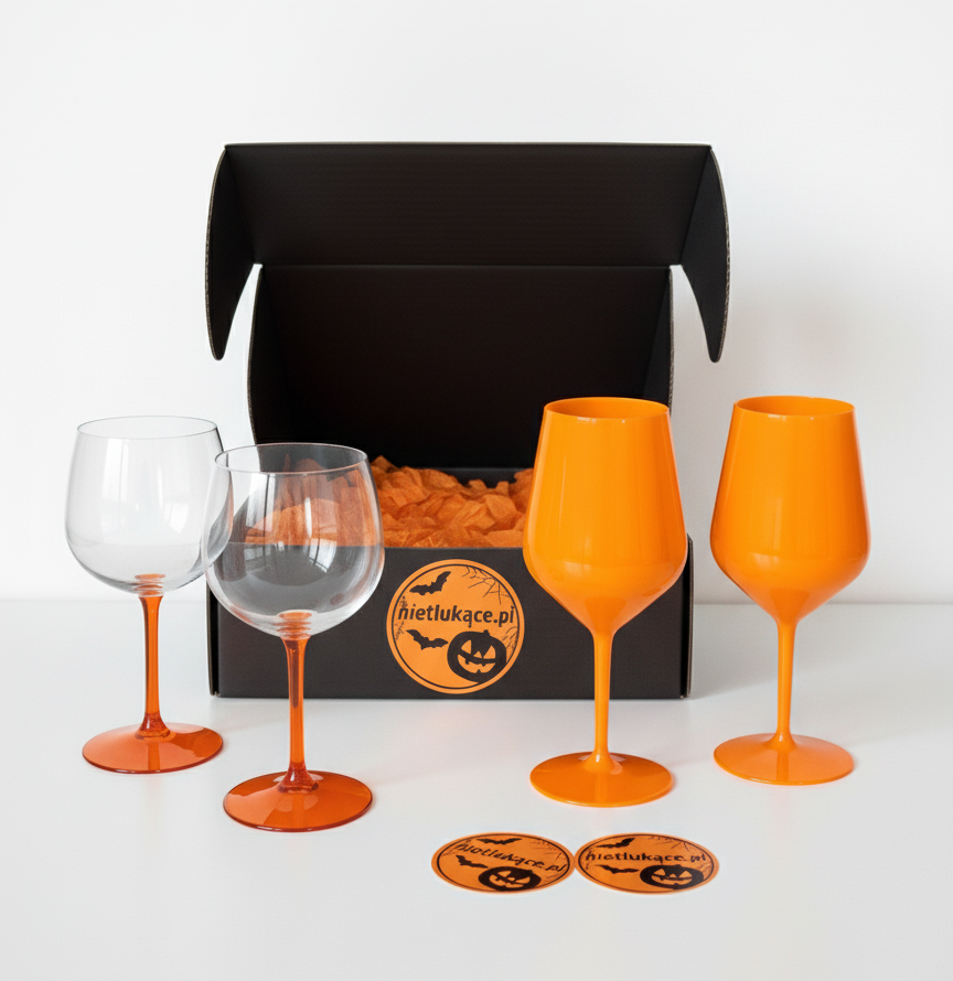 Nietłukące kieliszki w czarno-pomarańczowej odsłonie – idealne na domówki, klimatyczne kolacje i imprezy Halloween. Edycja limitowana tylko do 31.10!