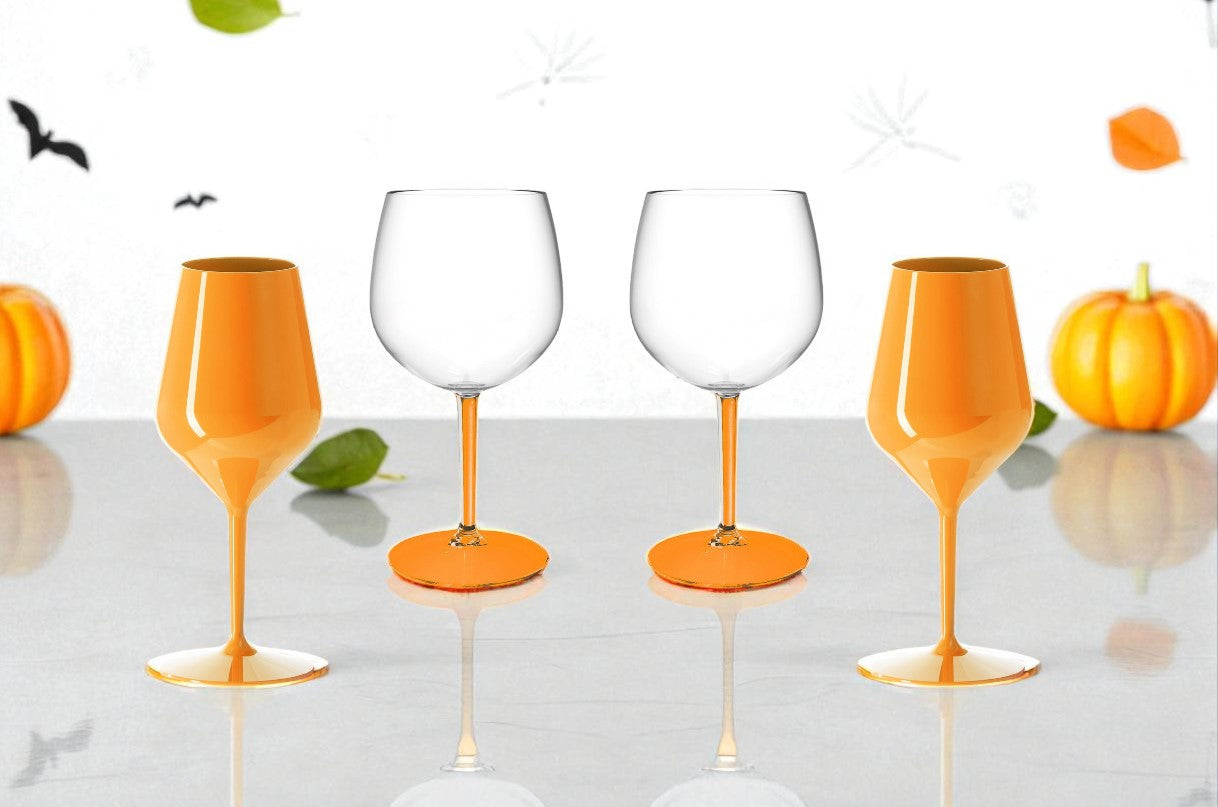 Eleganckie, nietłukące kieliszki w czarno-pomarańczowej odsłonie. Stwórz klimat Halloween na swojej imprezie bez stresu o stłuczenia