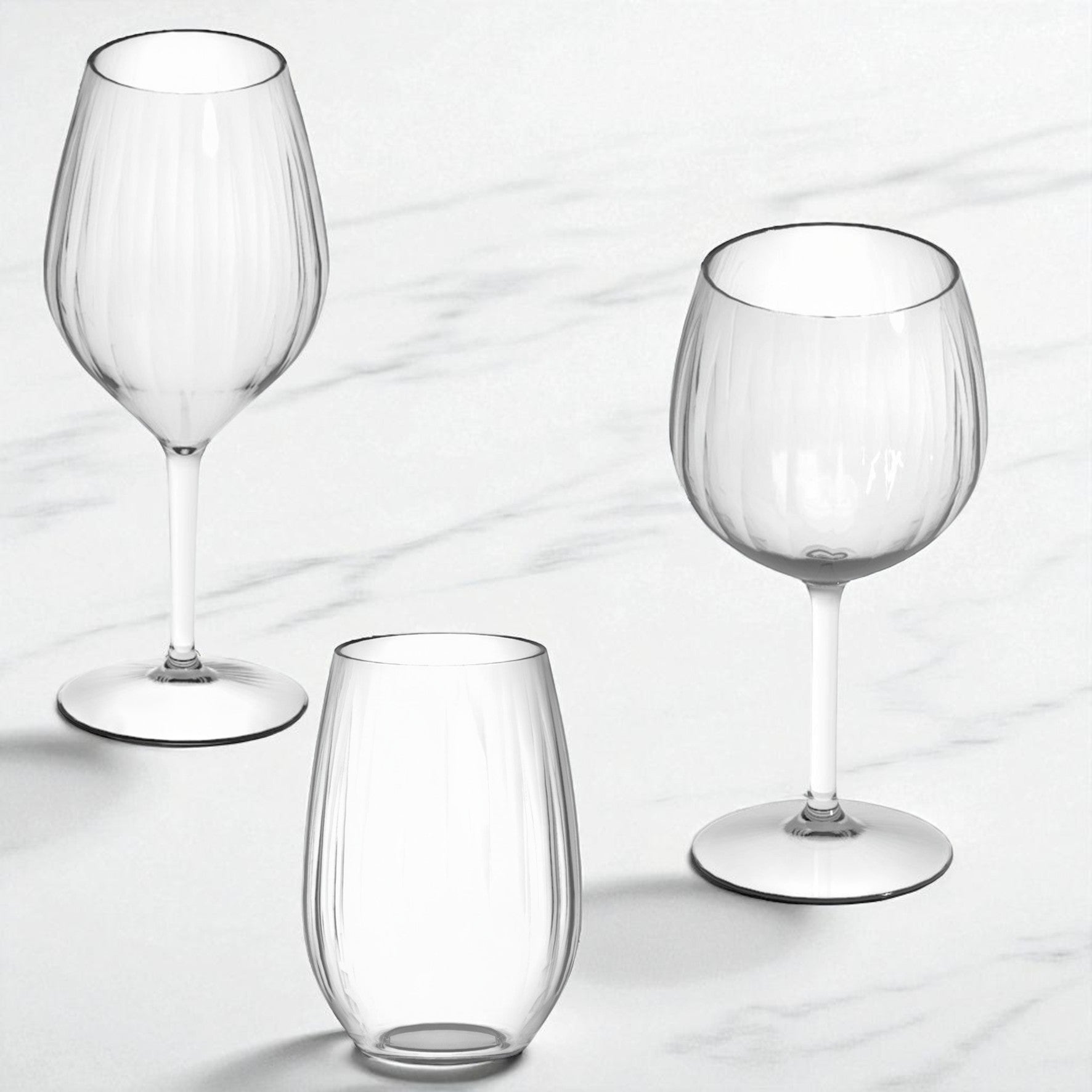 Zestaw sześciu eleganckich naczyń z linii Venezia – dwa kieliszki 510 ml, dwa kieliszki 580 ml i dwie szklanki 535 ml. Idealny komplet do serwowania wina, drinków i wody na tarasie, w ogrodzie czy w domowej jadalni. Lekki, trwały i bezpieczny – łączy wygląd szkła z wygodą tworzywa.